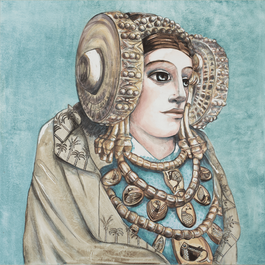 La Serie de Damas Iberas, surge tras la oportunidad de exponer en el Museo de la Alcudia, el Yacimiento Arqueológico donde se encontró la pieza más importante del arte ibero: La Dama de Elche, icono del arte español e internacional. Como describe Ricardo Olmos “El descubrimiento de la Dama de Elche en 1897 significó la primera afirmación inequívoca de esta cultura”. Permitió la identificación de una civilización evolucionada, con tradiciones, arte y expresiones propias, de la que todos los levantinos somos herederos.