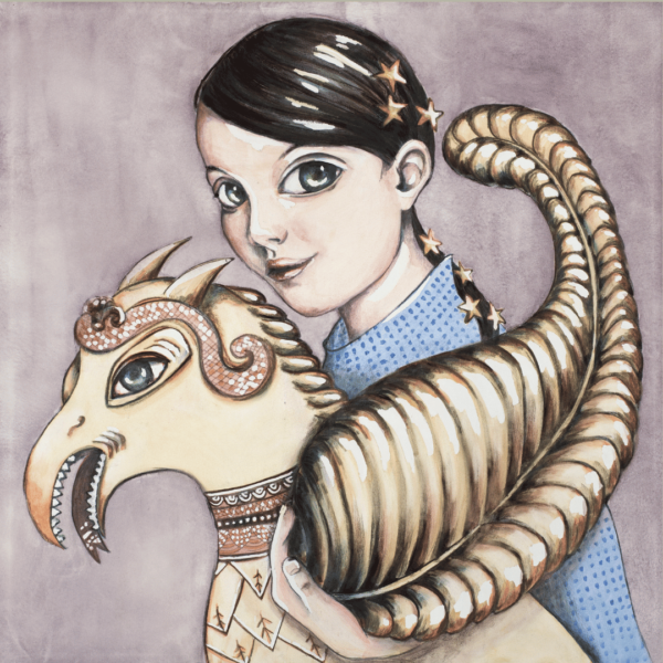 En la mitología íbera son recurrentes las “grifomaquias”, luchas entre hombres y “Grifos” -bestias medio águilas, medio leones-. Mi “Dama del Grifo” reinterpreta el tema, cambiando la violencia por el abrazo.